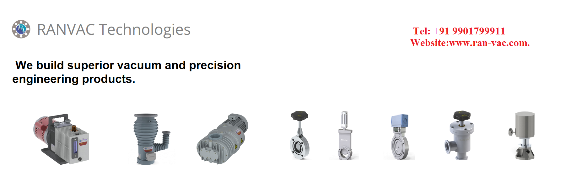 components. Ranvac Technologies specializes in vacuum valves, vacuum pumps and vacuum components. Our team includes industry experts, design team and solution builders focused on vacuum equipment and solutions. Ranvac includes modern manufacturing, assembly, service and technical support centers across India in Bangalore, Delhi, Mumbai, Hyderabad and Kolkata.