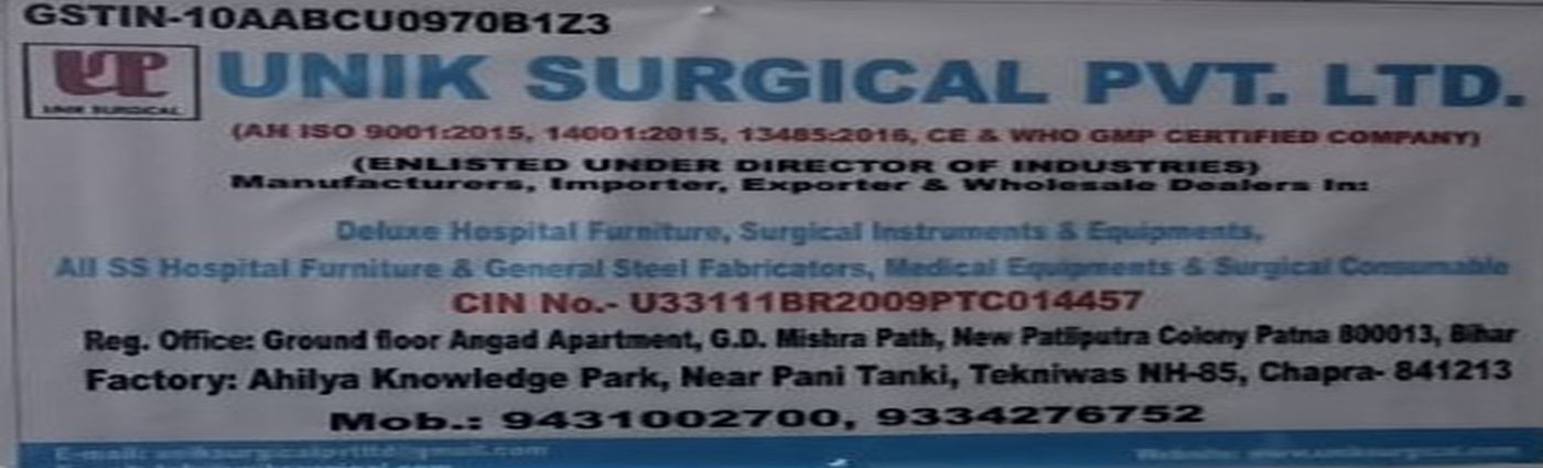 M/s. Unik Surgical Private Limited, Flat no. 2C/159, Building- G.D. Mishra Path,, Near Patliputra Colony, Patna 800013 is a Manufacturing different types hospital , office & home furniture’s & Equipments .